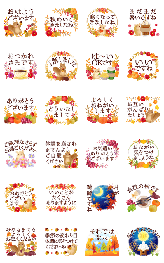 紅葉が舞う!秋を感じる大人可愛いリスたち -LINEスタンプマニア