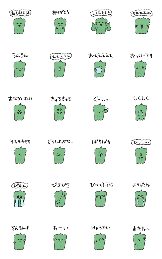 シンプル 動くピーマン 日常会話 -LINEスタンプマニア