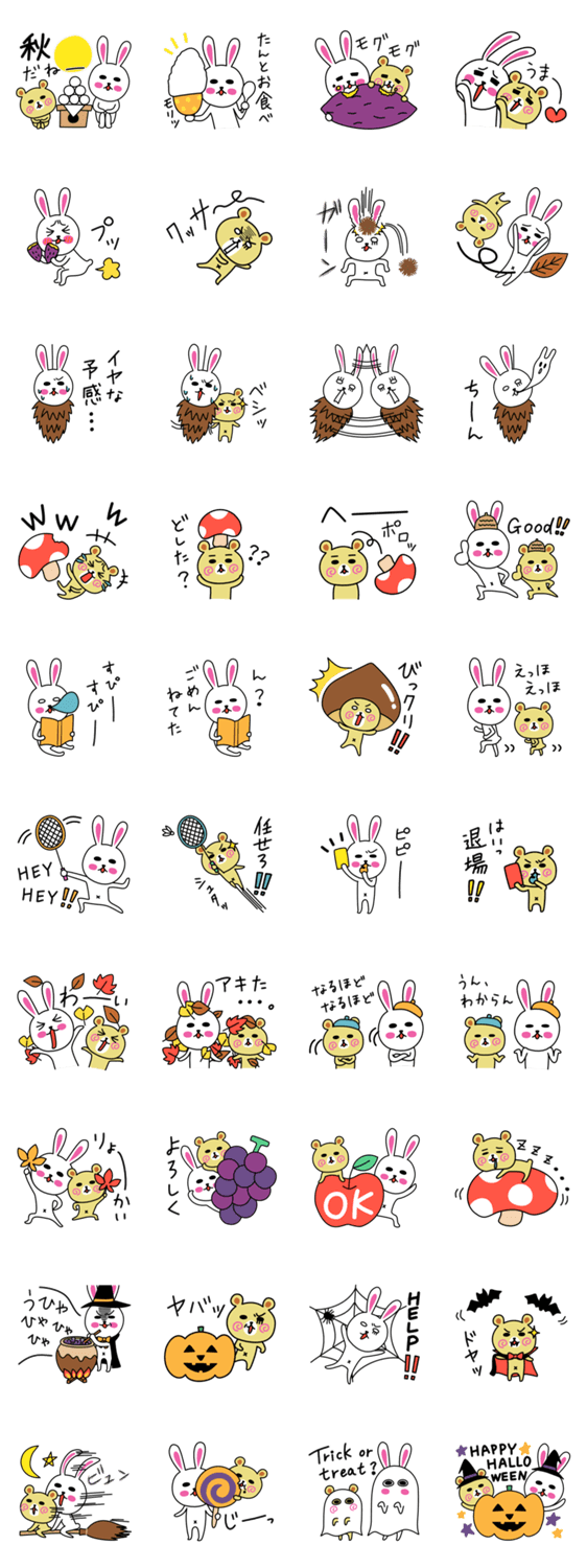 うさ子 with くまごろう第5弾!秋に使えるスタンプです!ちょっとシュールなうさ子とくまごろうコンビで秋を楽しみましょう♪うさぎ/くま/シュール/かわいい/秋