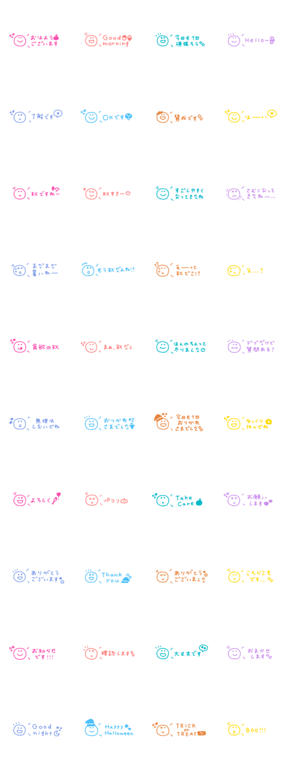 カラフルなスマイルのあいさつスタンプです。 あいさつ/スマイル/省スペース/シンプル/吹き出し/秋