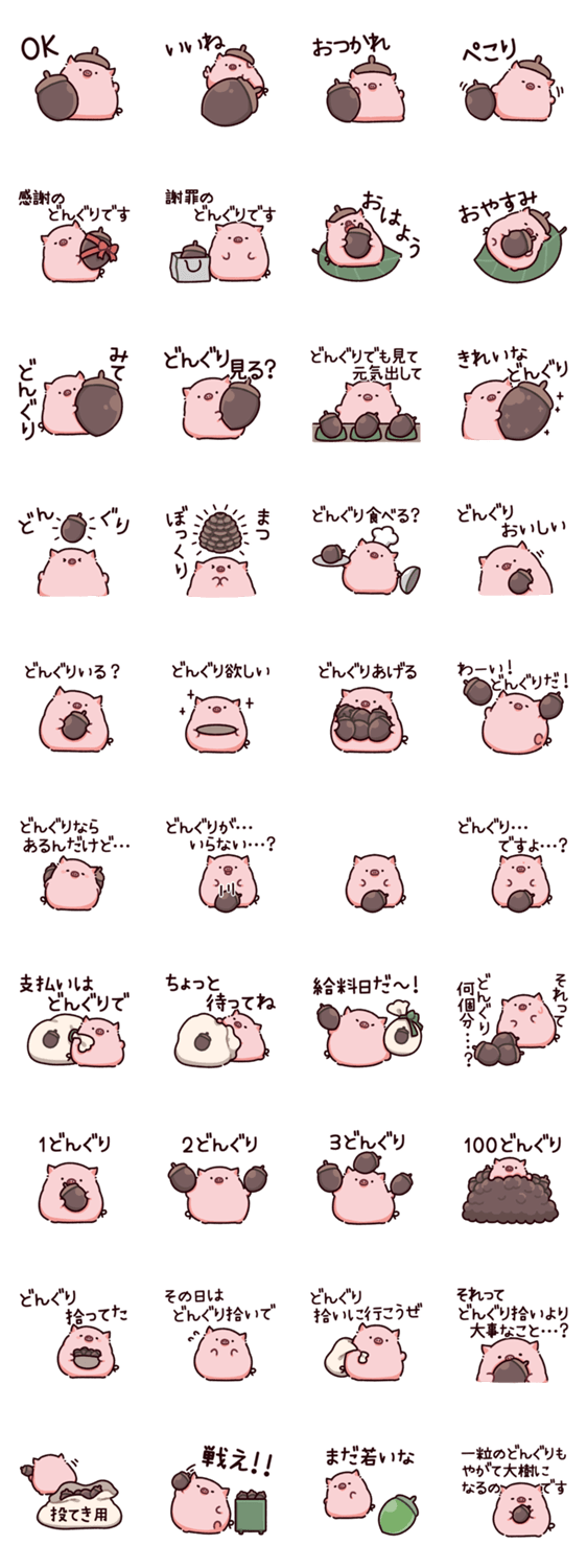 どんぐりが大好きな方向けのこぶたスタンプ。