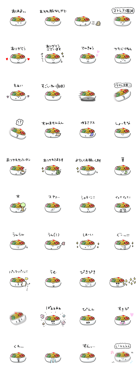 ひやしちゅうかのシンプルで使いやすいスタンプです。[ゆるかわ シュール 可愛い 食べ物 敬語 ダジャレ 毒舌]