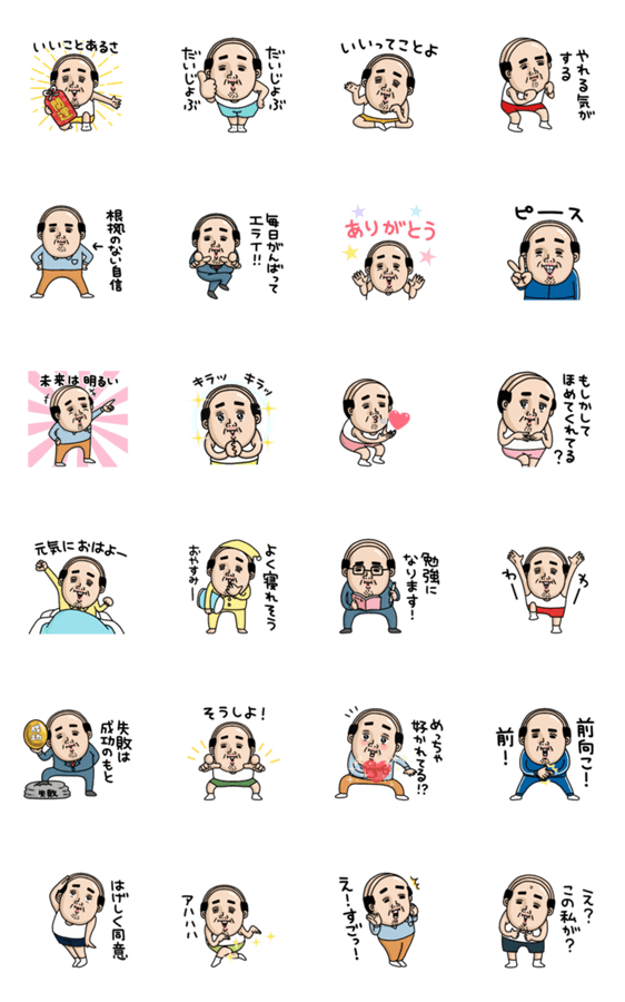 ポジティブな父のスタンプです。前向きな気持ちになれますように!