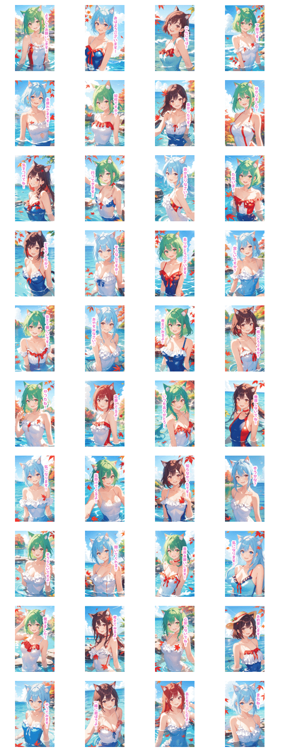 秋の海と水着の猫女子BIGスタンプ -LINEスタンプマニア