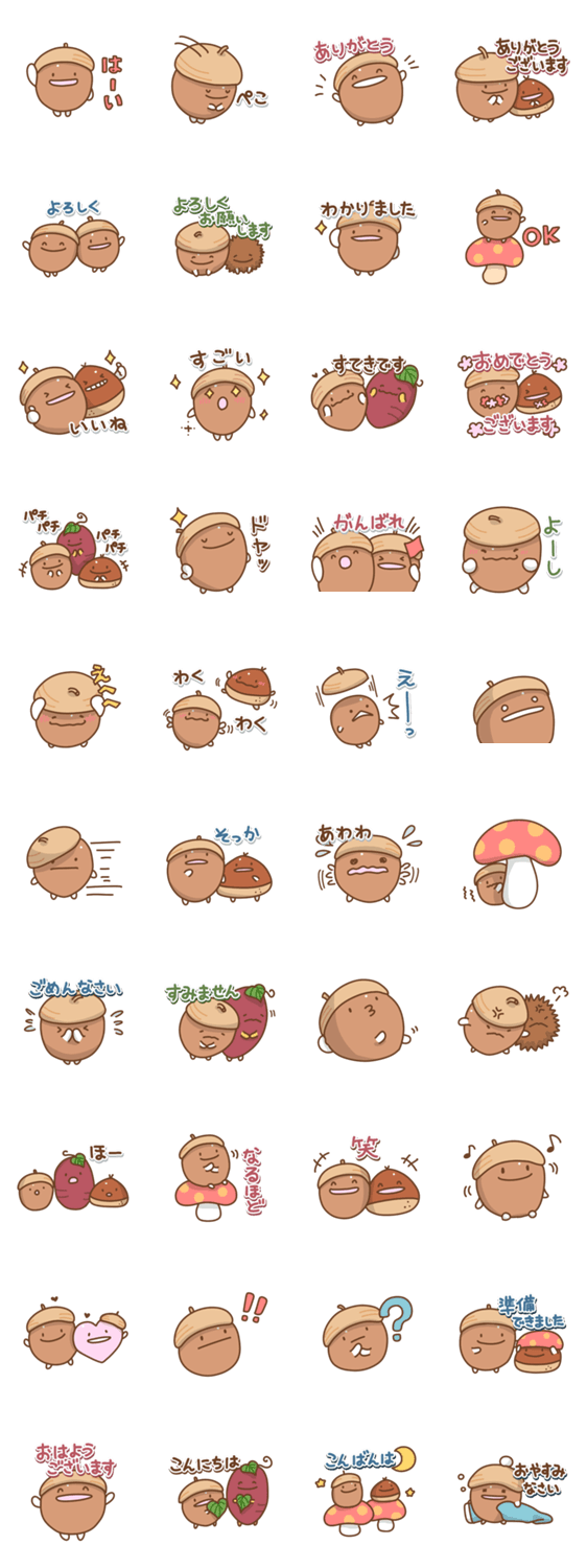 秋の植物から、ドングリです。サツマイモ、栗もいるよ。