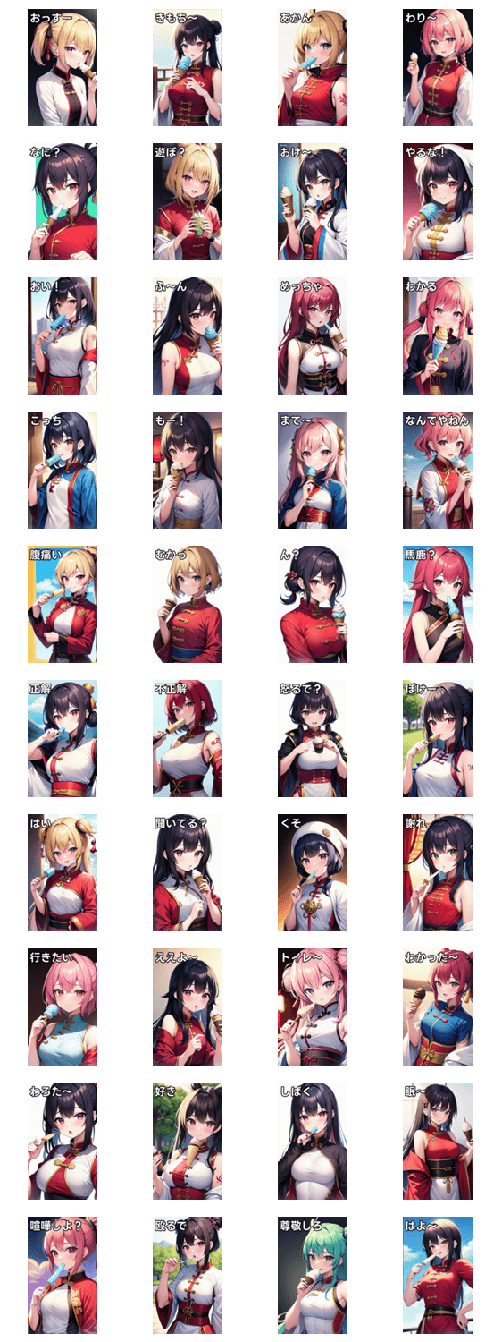 アイス食べるタトゥーカンフー女の子 -LINEスタンプマニア