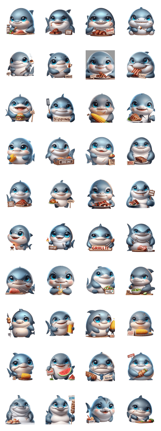 歯をむき出しにしたサメがバーベキューに誘 -LINEスタンプマニア