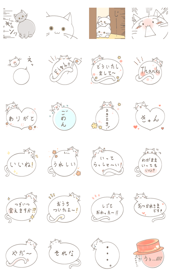 ねこちゃんとコメントのかわいい&かわいいスタンプ。
