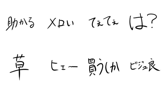 助かる,てぇてぇ,メロい,は?,草,買うしか,ビジュ良,ヒェーというオタクの叫びスタンプです.推しに助かった時にどうぞ.