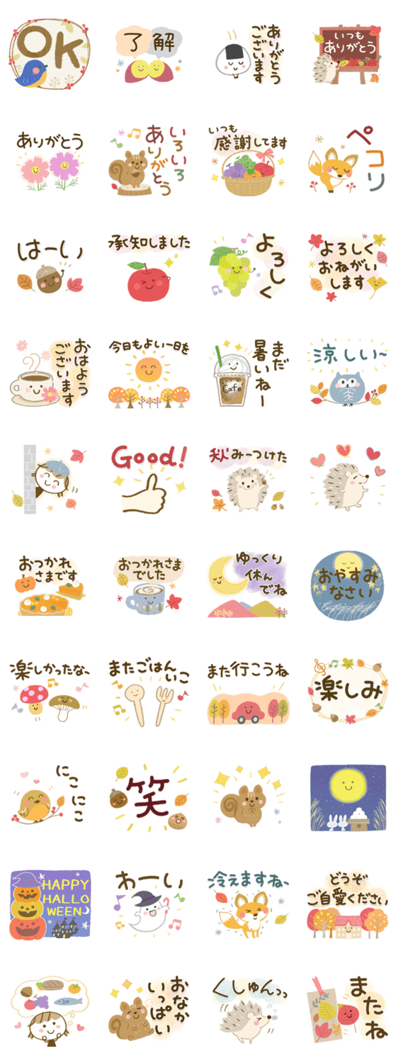 毎日使える秋バージョンのスタンプです♪ひらりーーの大人の気遣いシリーズ31 秋/敬語/挨拶/鳥/大人/ハロウィン/お月見/敬老の日