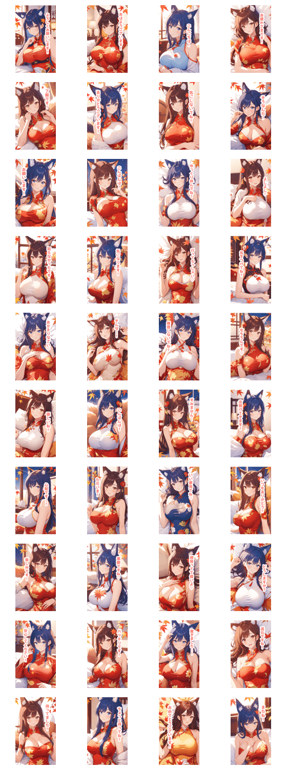 紅葉とチャイナドレスの狐女子BIGスタンプ -LINEスタンプマニア