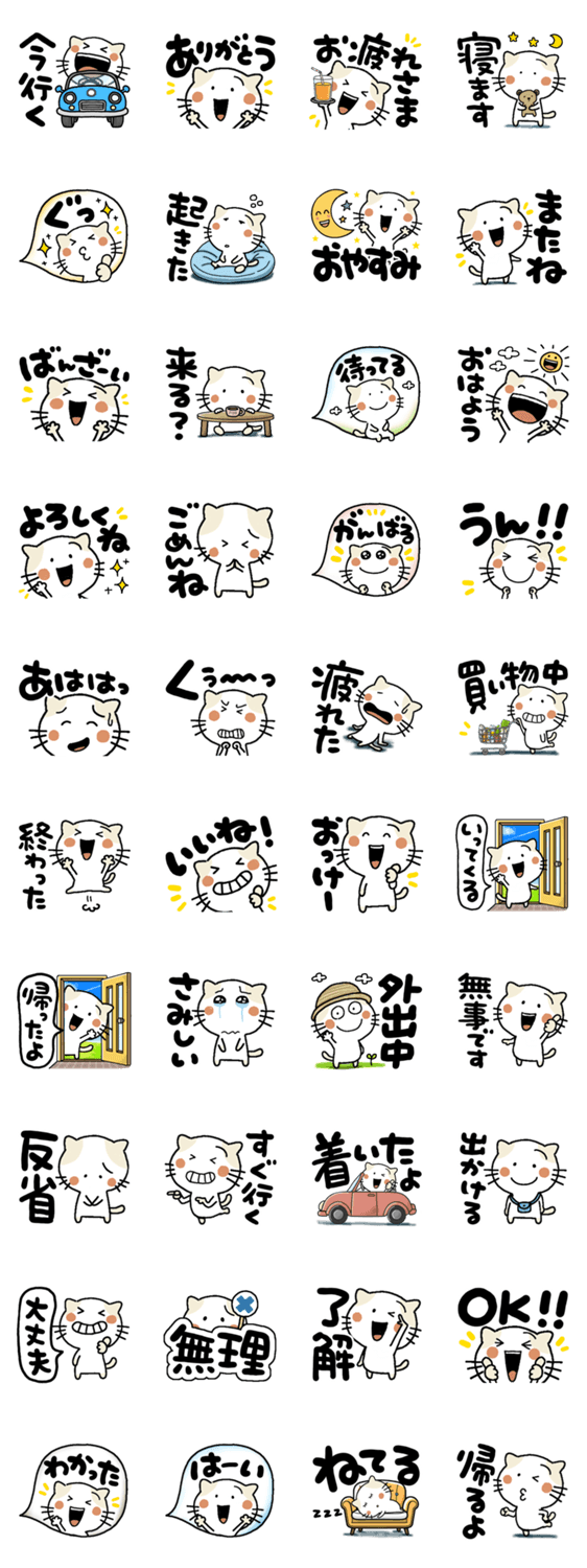 見やすい大きな文字とでか猫にゃ吉。現状報告スタンプと毎日使えるあいさつ。いろいろあって便利です。