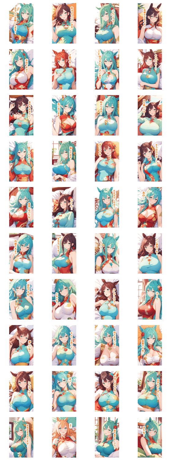 柔和なチャイナドレスの馬女子BIGスタンプ -LINEスタンプマニア