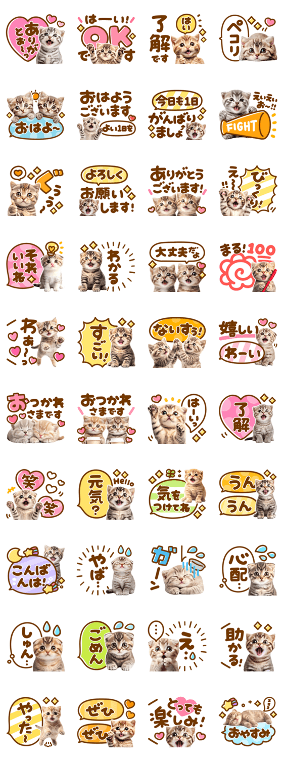 字が大きくて見やすい♪かわいいふきだしいっぱいのねこちゃん達のスタンプです♡猫