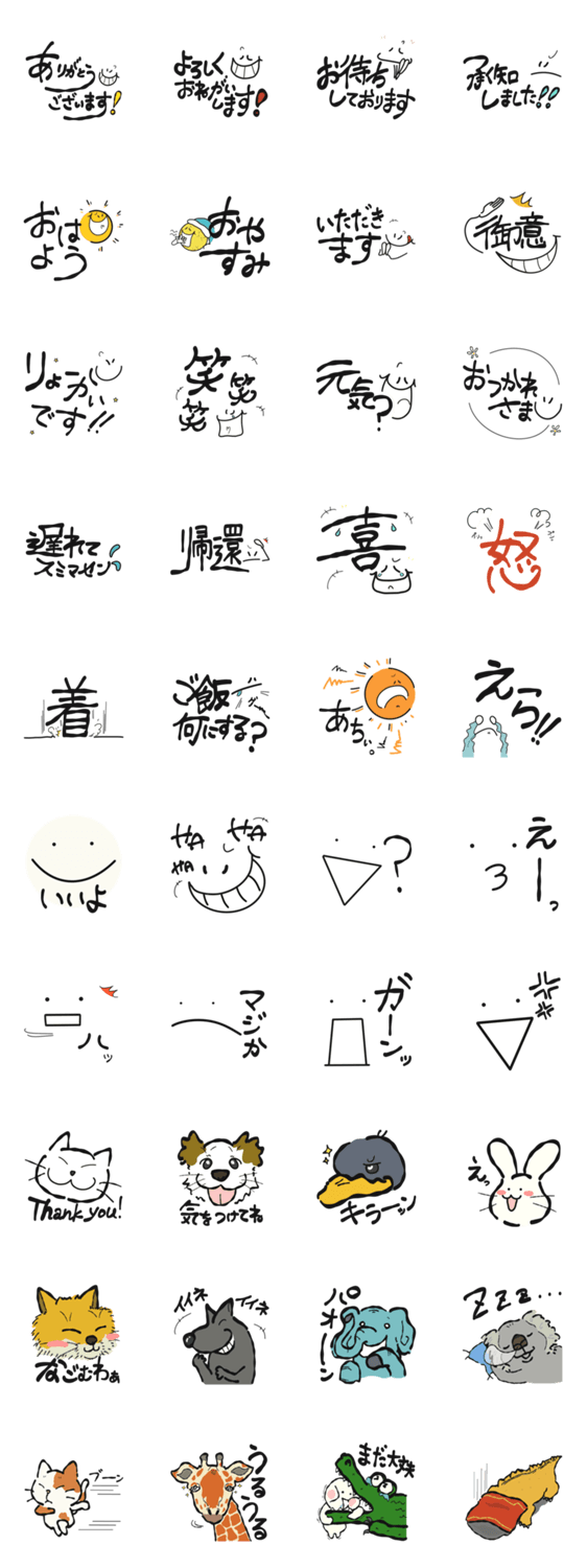 らくがきのようなスタンプです!動物たちも愛くるしい。