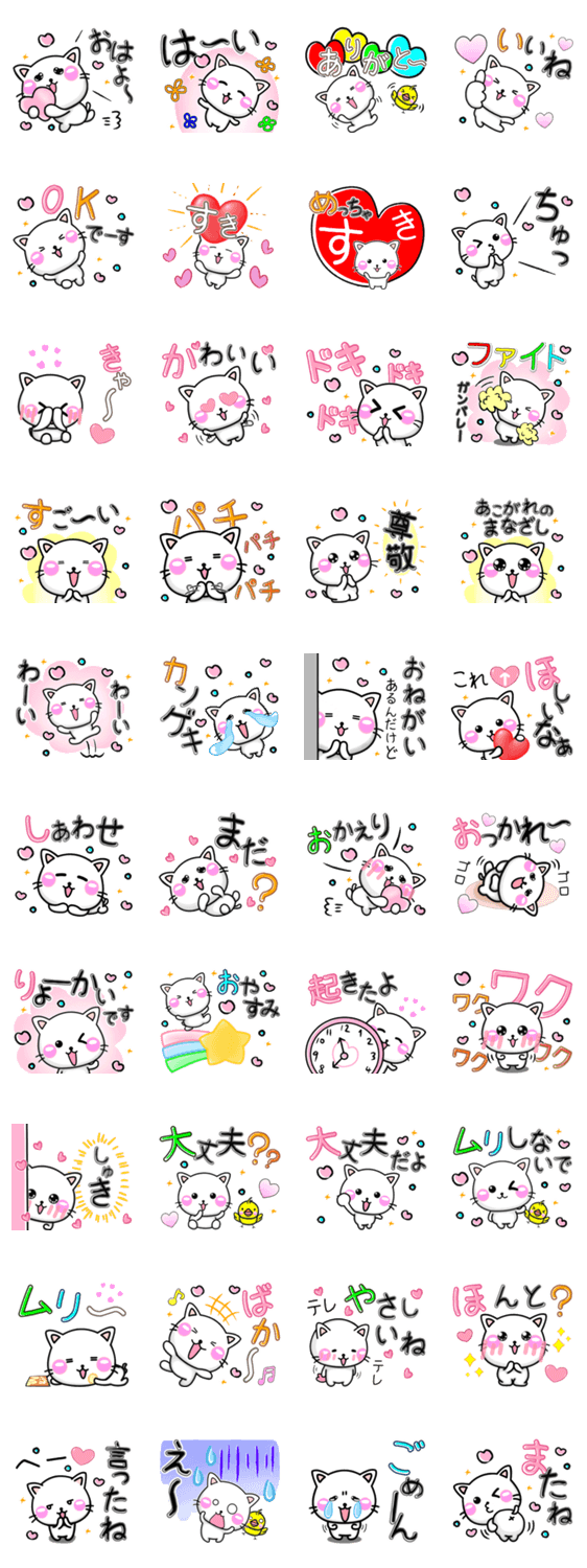 白ネコのあいうえお・・・ってるスタンプ