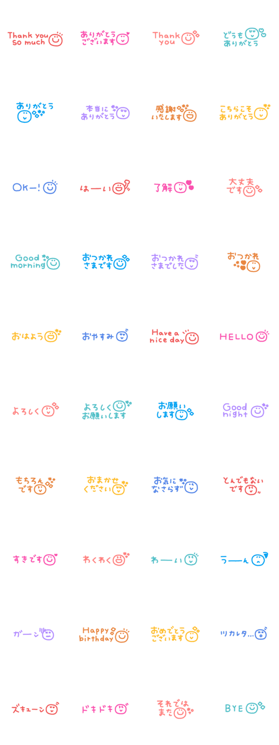 カラフルなスマイルのあいさつスタンプです。 あいさつ/スマイル/省スペース/シンプル
