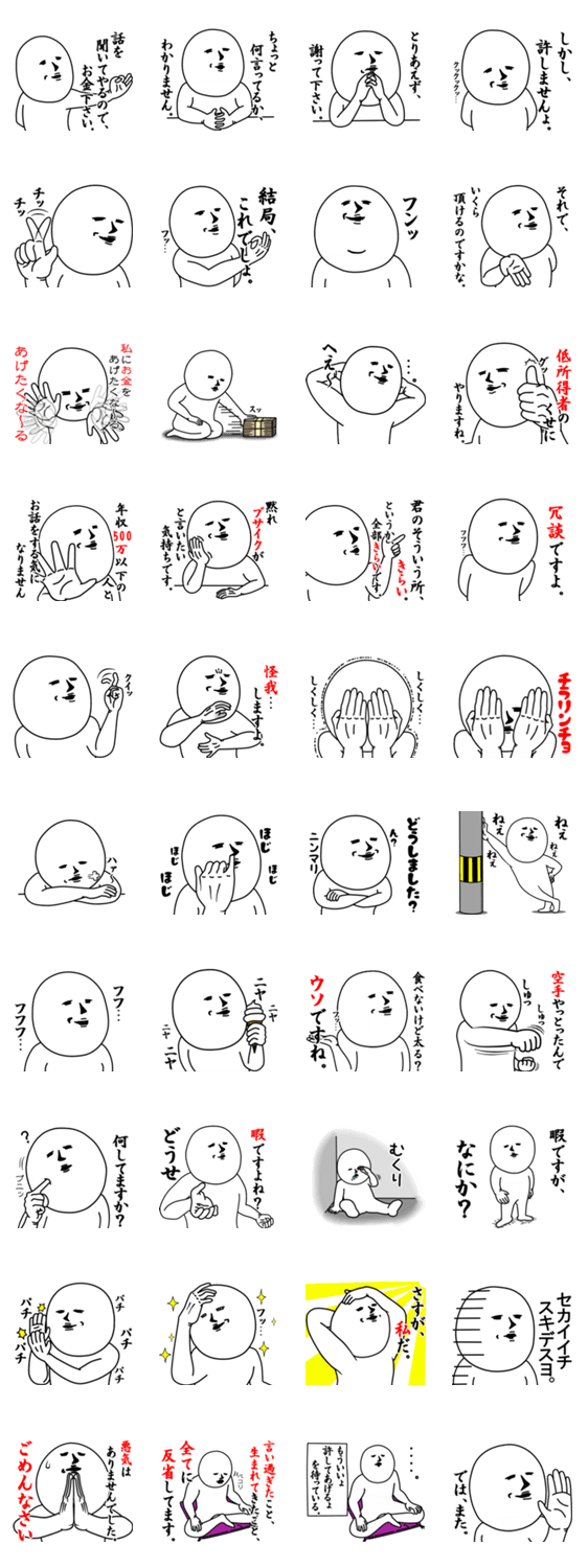 とりあえずゲスい奴です。可愛い系のスタンプに飽きた方、性格のねじ曲がってる方、専用のスタンプです。送る相手は慎重に。うざいマンのザ・スター17作
