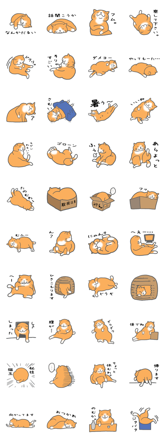 腹まわりが気になるデブネコのダルミーちゃんがダラダラするスタンプです。