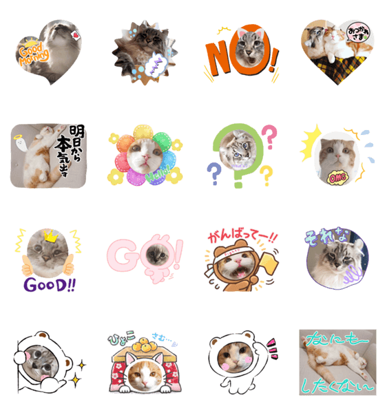 白ネコのあいうえお・・・ってるスタンプ