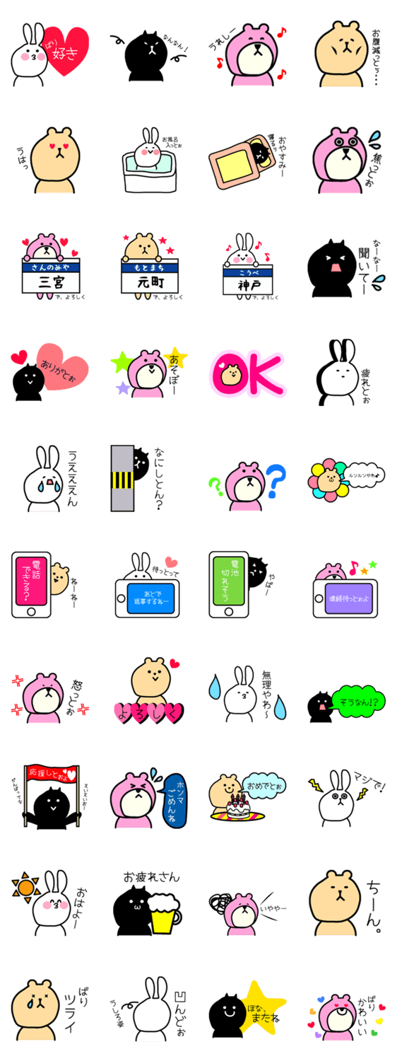 動物が可愛い神戸弁のスタンプです。関西弁の中でも大阪弁とは少し違う神戸弁。