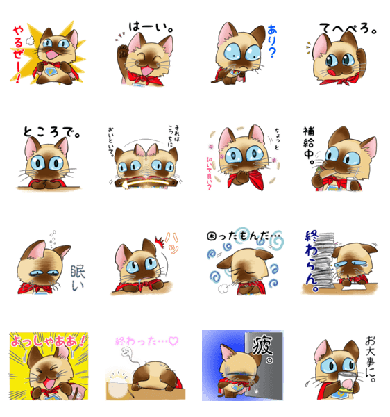 | スタンプ説明 | すうぱあにゃんスタンプ第4弾。 仕事、勉強など、なにかと活動時のシチュエーション集。 |