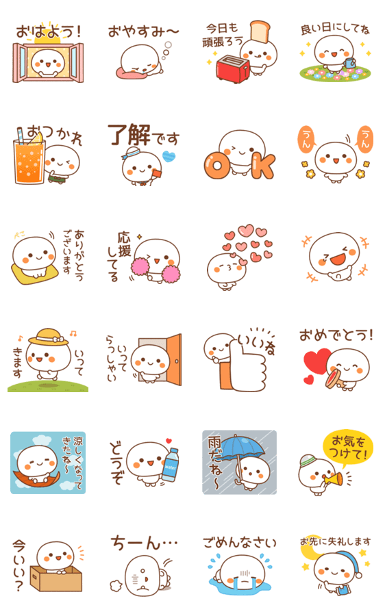 しろもっちの日常使いできる言葉を集めた便利なスタンプセット♪友人や家族、大切な人へ送れます! [励まし・気づかい・感謝・応援・エール・癒し・秋・天気]