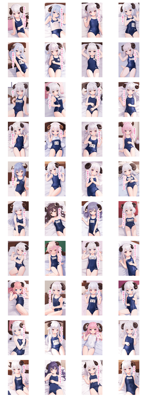 ベッドのスクール水着の羊女子BIGスタンプ -LINEスタンプマニア
