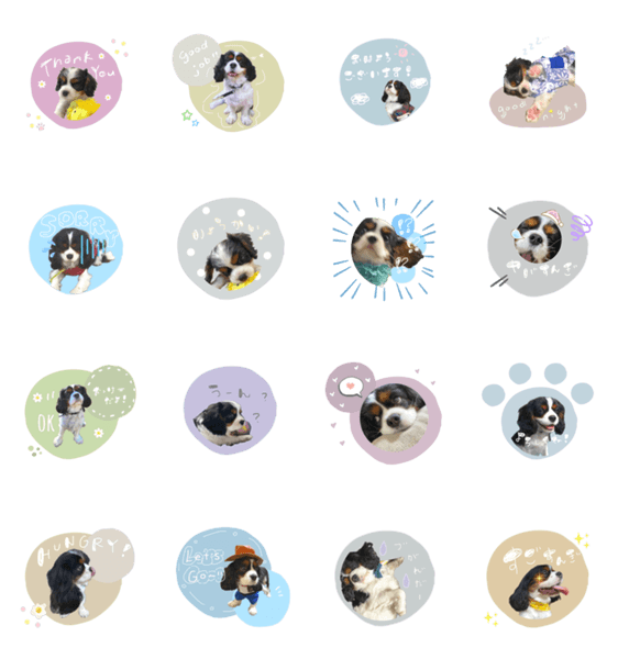 日常的に使える、キャバリアのゆるかわいいスタンプです