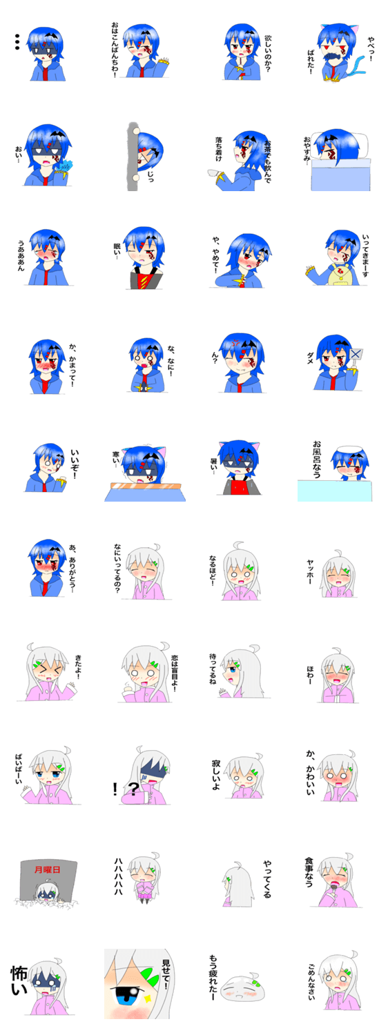 | スタンプ説明 | 青髪の吸血鬼とおっとりした天使があなたのトークをハチャメチャにします。 |