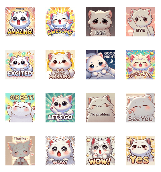 | スタンプ説明 | もふ猫の日常スタンプです♪(毎日/英語/ふんわり/ねこ) |