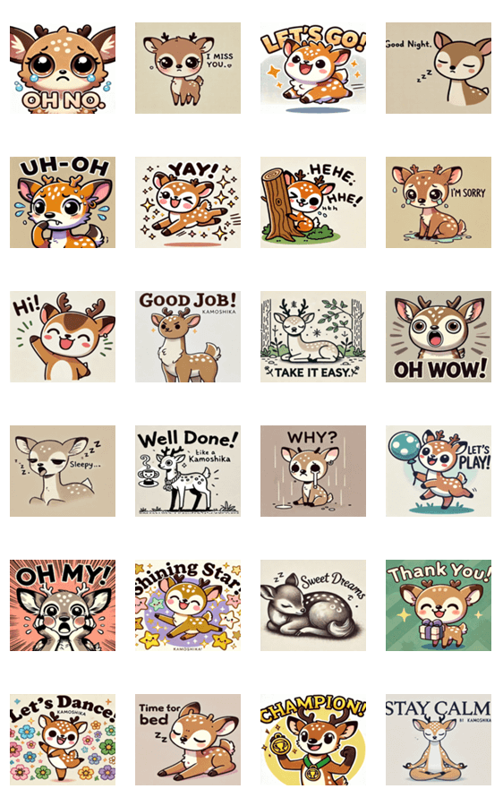 感情豊かなうるうるカモシカのスタンプで、友達や家族との会話をもっと楽しくしましょう!