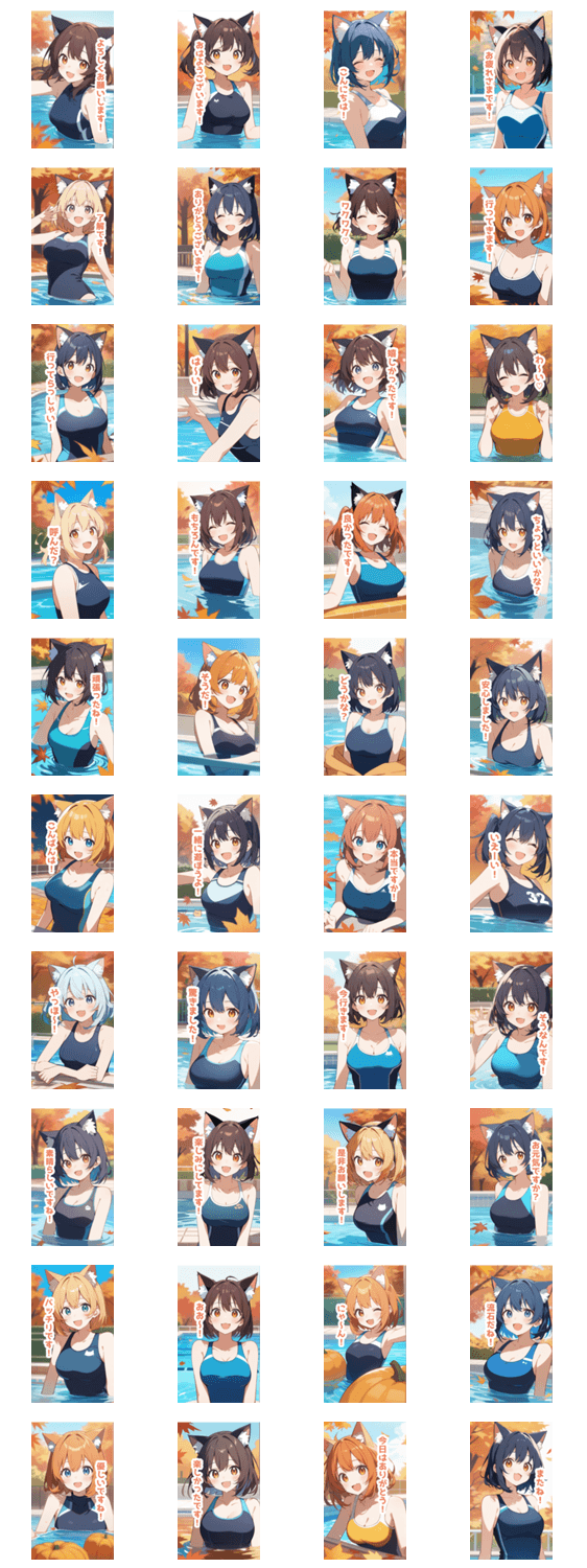 秋プールの猫の水着女子BIGスタンプ -LINEスタンプマニア