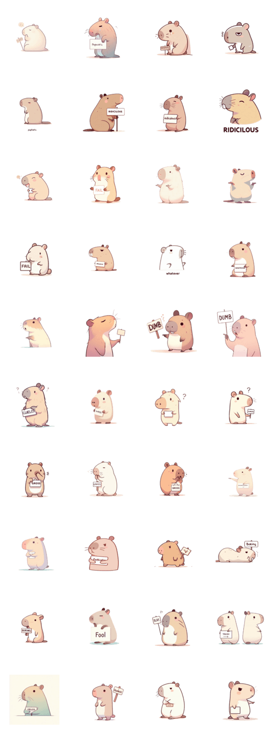 カピバラくんの皮肉な絵文字ステッカー、カピバラ、皮肉、面白い、イラスト、キャラクター、LINEスタンプ、動物、ユーモア、風刺、楽しい、絵文字ステッカー、