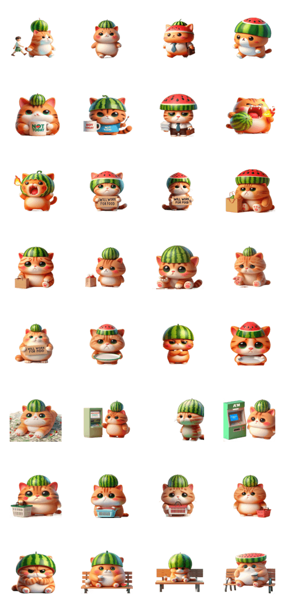 スイカを頭にのせた猫、給料に不満 -LINEスタンプマニア