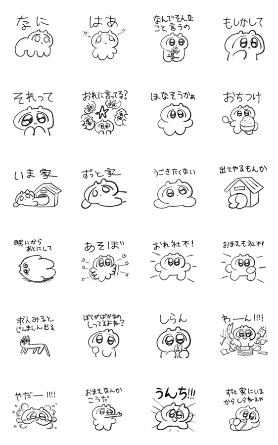 白ネコのあいうえお・・・ってるスタンプ