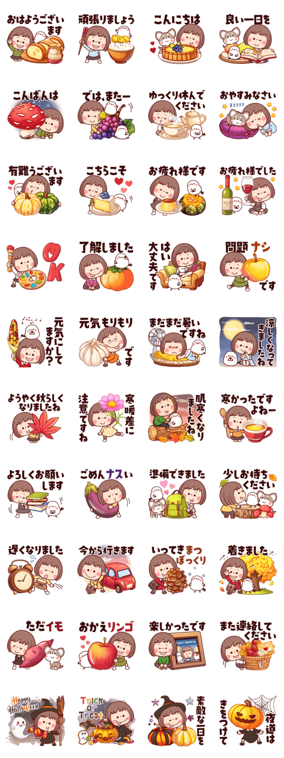 秋に使える優しいイラストに日常でよく使う言葉とダジャレでほっこり♡挨拶/敬語/犬/シマエナガ/大人女子/家族/ママ友/食べ物/スイーツ/ハロウィン/大人可愛い/待ち合わせ