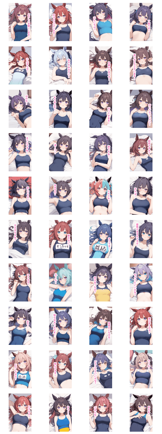 ベッドのスクール水着馬女子BIGスタンプ -LINEスタンプマニア