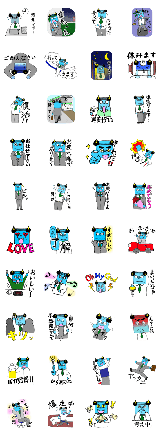 鬼家族シリーズ待望の第2弾!!仕事を頑張るお父さんにオススメ鬼嫁や同僚に、毎日使えて楽しめるスタンプ☆是非、鬼嫁スタンプと合わせてご夫婦でお使い下さい!!