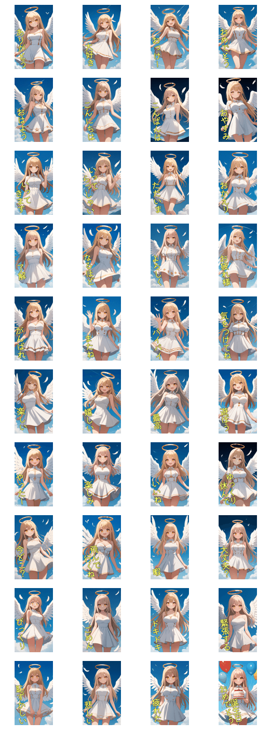 | スタンプ説明 | かわいい/女の子/女性/金髪/綺麗/美しい/清楚/ギャル/美少女/美女/日常/かっこいい/エンジェル/天使/ワンピース/ドレス/ミニスカート/羽/翼/つばさ/飛ぶ/誕生日 ※このスタンプはトークルームで大きく表示されるBIGスタンプです。 |