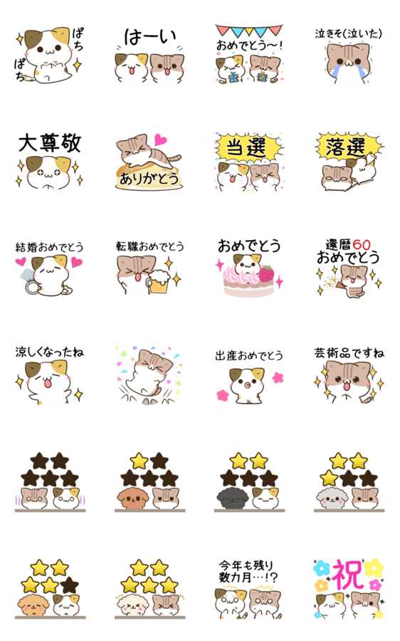 動く!毎日五月病な犬とねこたち&お祝い -LINEスタンプマニア