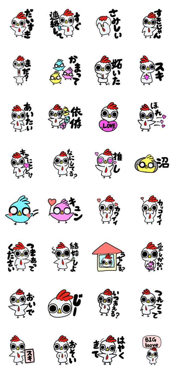 にわとりとっちゃんの愛が溢れるスタンプです。