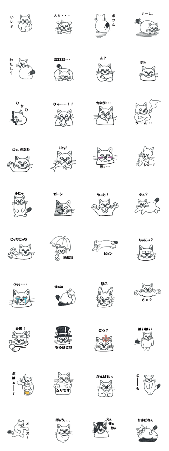 ちょっと憎たらしい猫、きばにゃんのぼそっと一言スタンプ。