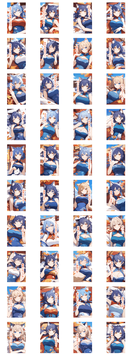 紅葉とチャイナドレスの猫女子BIGスタンプ -LINEスタンプマニア