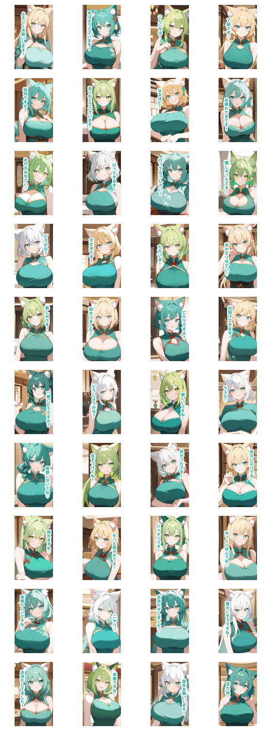 翡翠色チャイナドレスの猫女子BIGスタンプ -LINEスタンプマニア