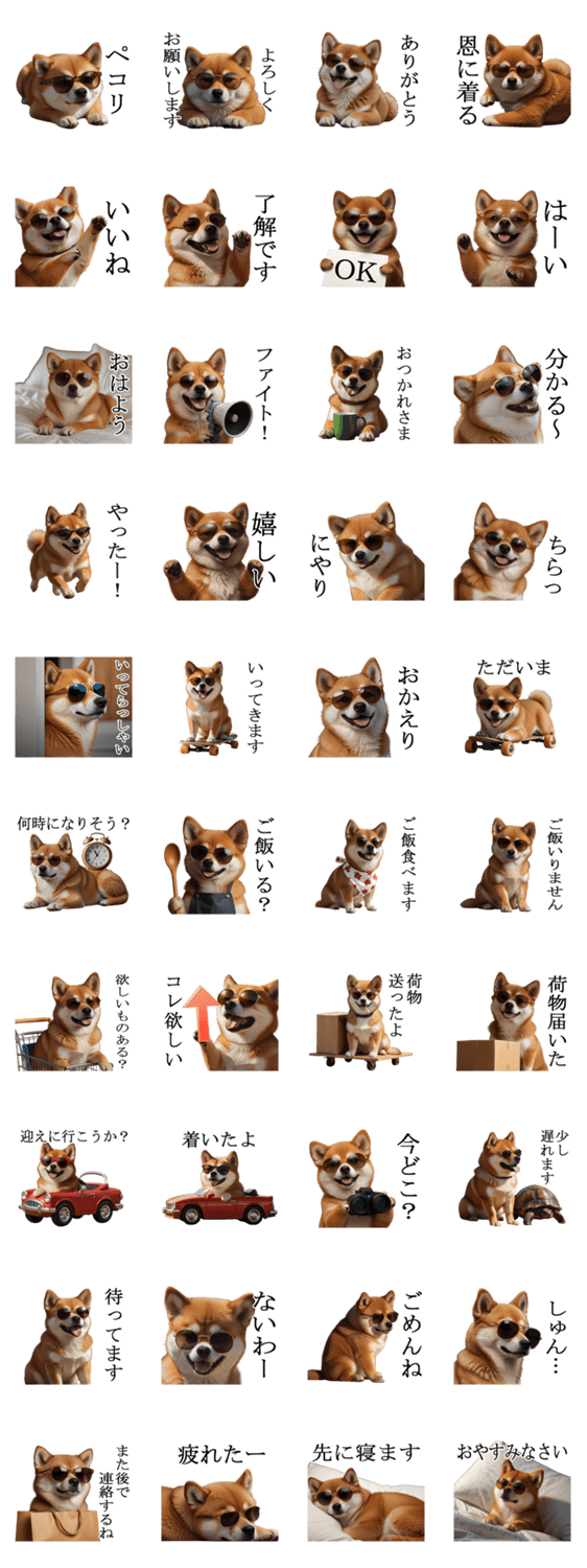 | スタンプ説明 | 家族で使える渋い柴犬のシブ犬スタンプです。 あいさつ/ネタ/おもしろい/家族/友達/ギャグ/毎日使える/よく使う言葉/シンプル/日常/使いやすい/面白い |
