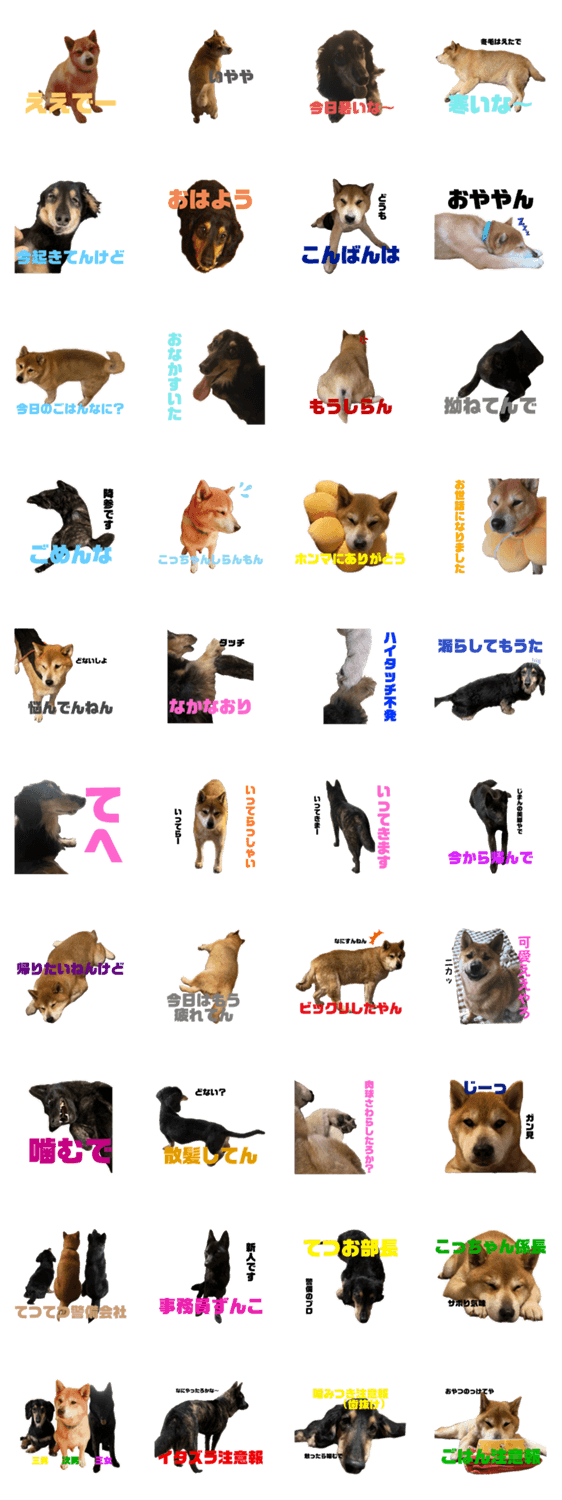 柴犬の虎鉄、ミニチュアダックスの鉄男、甲斐犬の杏子(ずんこ)のスタンプ
