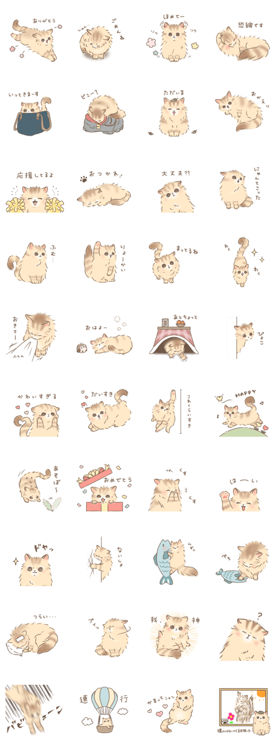 日常の会話で使える甘えん坊のかわいい猫「まきお」のスタンプを作りました☺︎