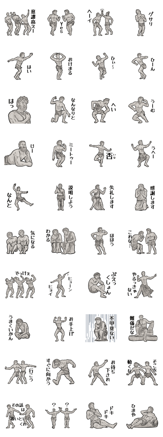 お喋りな石像たちを集めました。日常会話で毎日使えるセリフつきのスタンプです。#面白い #ユーモア #セリフつき