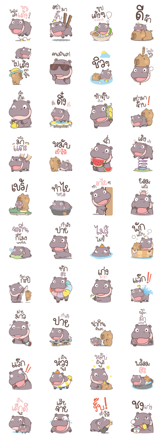 | スタンプ説明 | Everything is out of control! Deng Deng Deng Deng, The chubby pygmy hippo, the darling of Thais, has captured the hearts of people all over the world. These stickers will show up extra large in chats. |